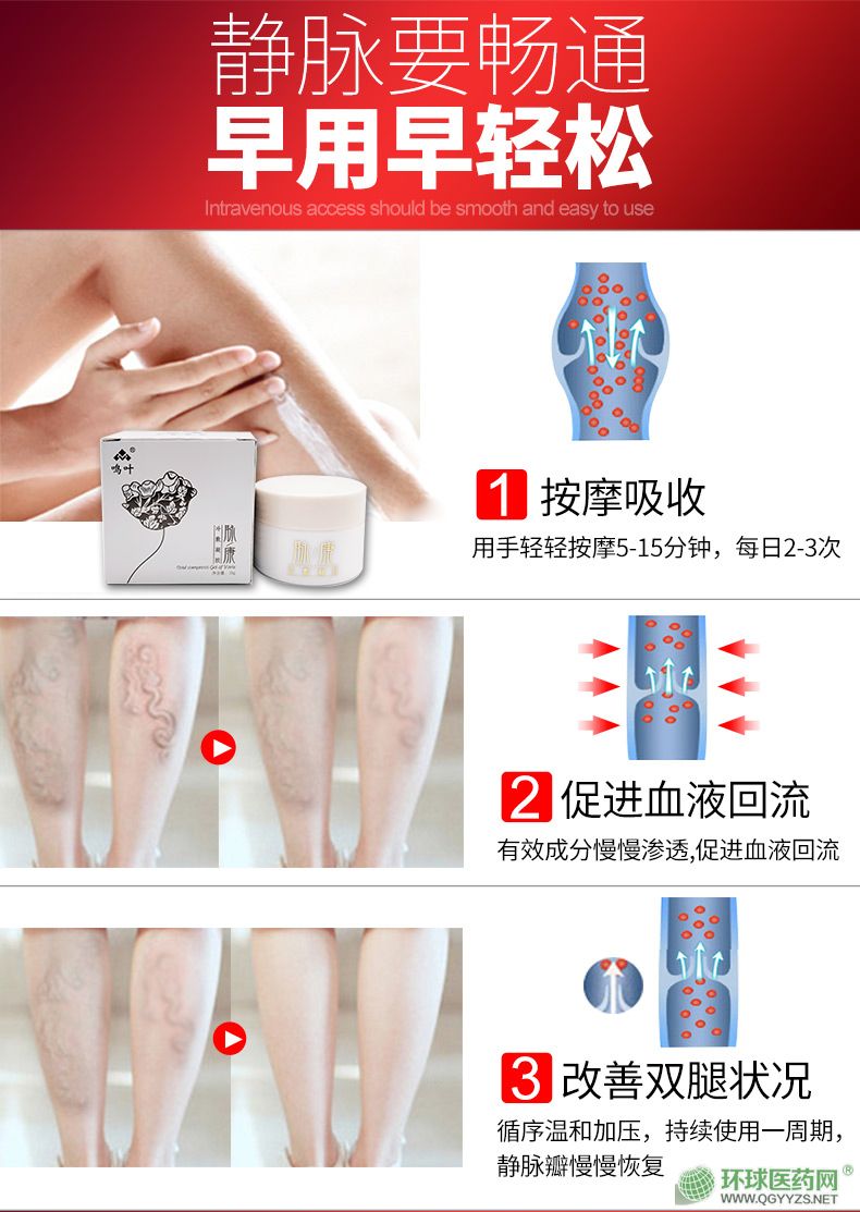 | 使用方法 | 外用。如静脉曲张引起的疼痛、肿胀直接涂于患处即可,用手指按摩5-15分钟,每日2-3次;根据病情可以适当调整使用次数。 |