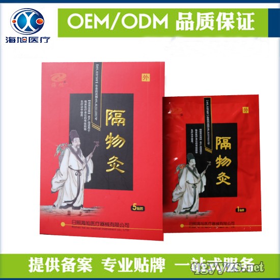 | 补充说明 | 在贴艾灸贴招商期间应注意休息,活动量不宜过大,严禁房事,不能用电热毯、热水袋敷贴艾灸贴处,以避免艾灸贴移位或药膏渗出而污染衣被、影响疗效;女性患者在月经来潮期间,应在腰骶椎或腹部停贴艾灸贴3~5天;创伤性骨折前期及严重皮肤病局部不宜贴艾灸贴OEM。未用的艾灸贴代理一定要密封好后存放在阴凉干燥处,以防药物挥发。如天气炎热,密封后可存放冰箱中,但不宜和茶叶、食品存放在一起。 如因运动或劳动时不慎造成肌肉扭挫伤或关节、韧带拉伤时,不要立即将艾灸贴贴于患处,因为这类艾灸贴OEM具有活血散瘀的作用,如伤后即贴不但达不到消肿止痛的目的,反而会使局部软组织充血肿胀、疼痛加重;对关节扭伤,在皮肤无破损的情况下,应先用冷水冲洗患处或用冰敷患处,使血管收缩,减轻肿胀疼痛现象,待24小时后再热敷或贴敷艾灸贴,这样既可减轻疼痛和肿胀,又可缩短病程。对于孕妇应禁用含有麝香、乳香、没药、红花、桃仁等药物的活血化瘀艾灸贴才行。 |