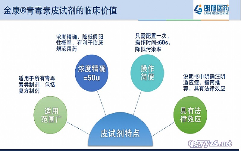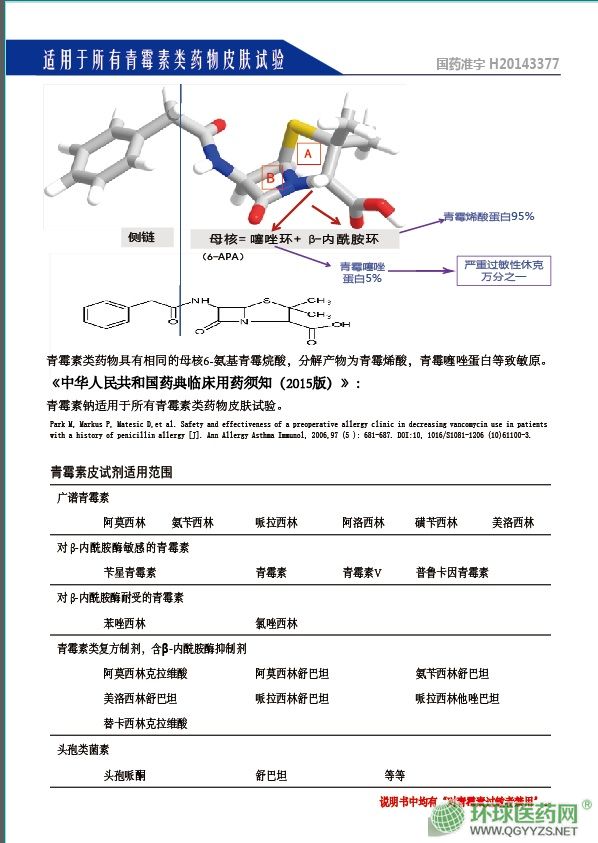 | 适应症 | 对成人和儿童均有预测价值; 适用于**青霉素类抗生素药物; 青霉素皮试目前主要用于对IgE介导的速发型过敏反应的预测,旨在降低过敏性休克风险; 是*快速、敏感、有效预测Ⅰ型过敏反应的方法; |