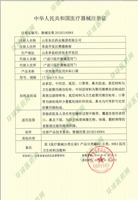 | 主要成分 | 医用口罩由口罩面体和拉紧带组成,其中口罩面体分为内、中、外三层,内层为亲肤材质,中层为隔离过滤层,外层为特殊材料抑菌层。这种高效医用口罩疏水透气性强,对微小带病毒气溶胶或有害微尘的过滤效果显著但不能有效过滤PM10和PM2.5,总体过滤效果良好,所用材料无毒无害佩带舒适。 |