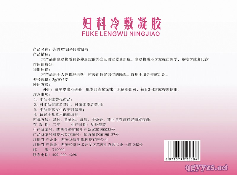 | 产品用途 | 适用于女性阴部灼热、瘙痒、红肿、干涩、异味、附件炎、子宫内膜炎、盆腔炎等不适症状的冷敷理疗 |