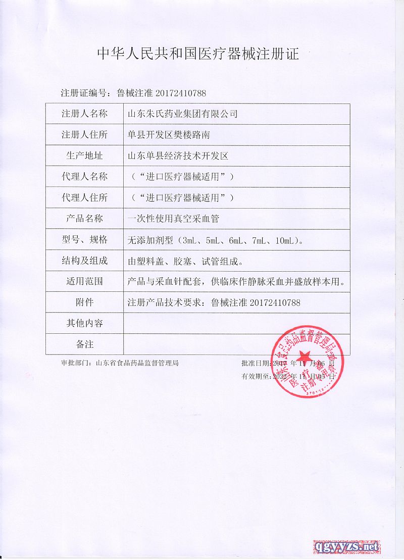 | 补充说明 | 2、在进行采血时,请勿拔动胶塞,以免失去真空; 3、本品是一次性使用,用后销毁。 [使用说明] 1、皮肤消毒后将采血针的静脉针刺入静脉;2、见回血后,将静脉采血针的穿刺针刺穿采血管的胶塞,血液将自动流入试管内。3、采血至标定容量时,拔出静脉针,待血液停止流动后,拔出穿刺针 |