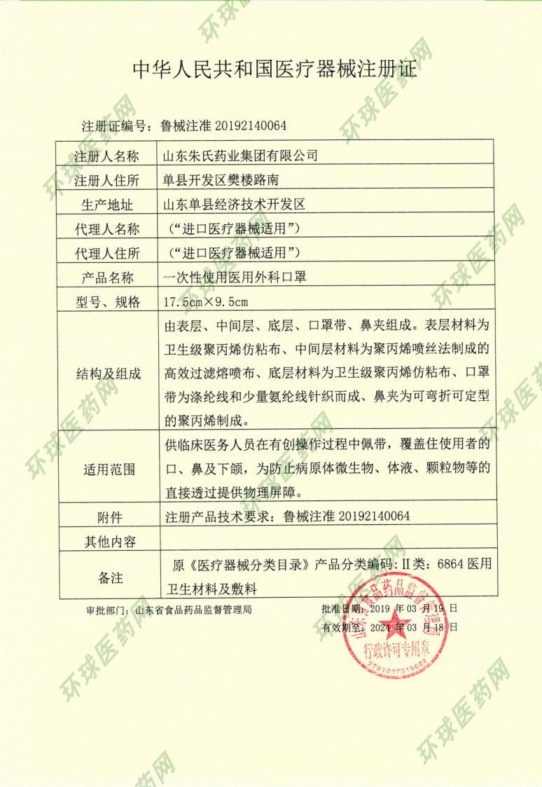 批准文号: 鲁械注准20192140064 【验证真伪】