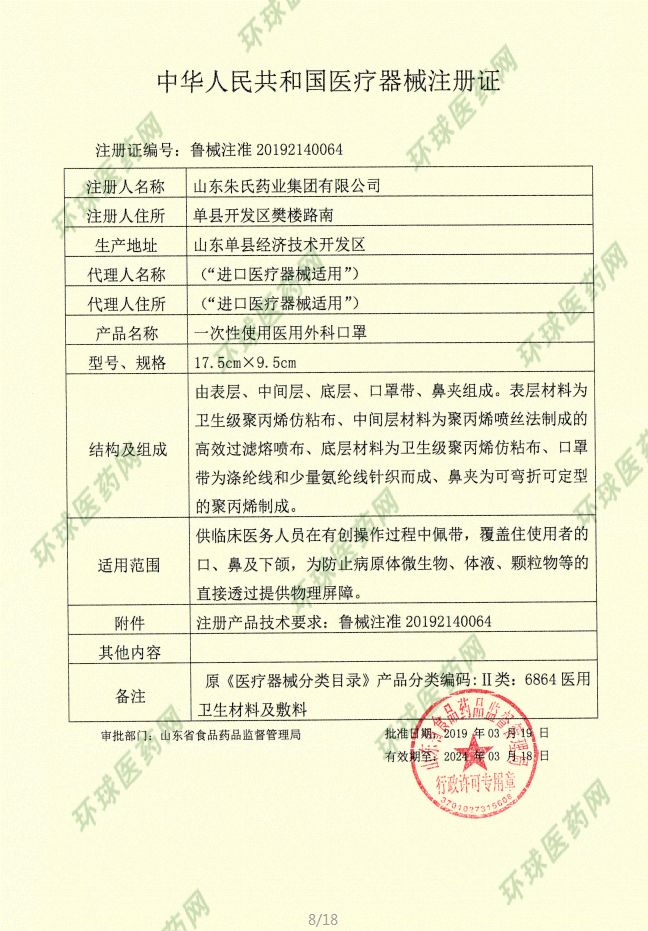 | 产品用途 | 医用外科口罩,一般用于医疗门诊、实验室、手术室等高要求环境,为医护人员工作是所佩戴的口罩。 |