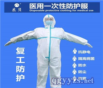 | 补充说明 | 本产品为无菌、一次性使用产品,有效期三年; 本产品只限于一次性使用,打开包装后应立即使用,使用时间不超过24小时,用后应焚烧处理; 穿着前如发现破损或拉链、缝线等任何部位有不妥之处,则不可使用; 防护服应避免长时间与化学物质接触。 本产品无阻燃性。 |