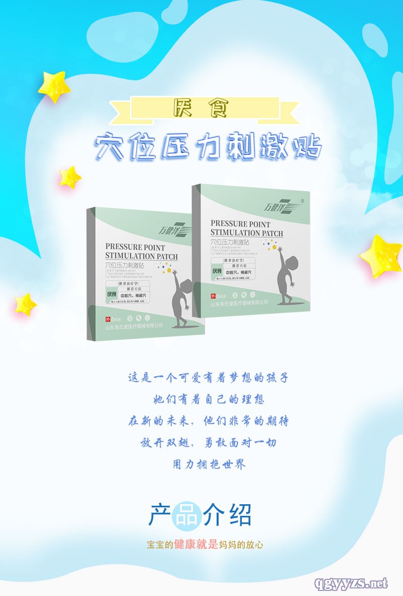 | 产品用途 | 贴于人体穴位处,进行外力刺激。无创。 |