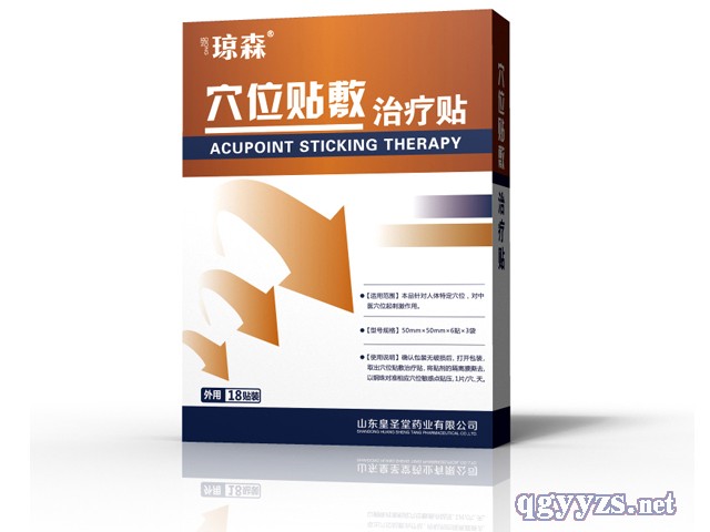 | 补充说明 | 【主要结构】穴位贴敷治疗贴由远红外陶瓷粉、丙烯酸压敏胶、水刺无纺布、不锈钢珠及离型纸制成。穴位贴敷治疗贴的压敏胶布剥离强度不小于1.0N/cm,持粘性应不大于2.5mm。远红外发射波长范围8μm-15μm,法相比辐射率≥75%。 【禁忌症】孕妇、皮肤溃烂处禁用。 【慎用】糖尿病、高热患者。 【注意事项】1.仅限一次性使用,使用后销毁;2.敷贴后如有过敏等不适,应停止敷贴。 【贮存】本产品应贮存在相对湿度不超过80%,无腐烂性气体,阴凉、干燥、通风良好、干净的环境内。 【产品技术要求】鲁械注准20152260318 【生产证许可】鲁食药监械生产许20140114号 【注册证编号】鲁械注准20152260318 【生产单位】山东皇圣堂药业有限公司 【生产地址】山东单县经济技术开发区 【有效期】两年 皇圣堂穴位贴主要分为三个规格:穴位贴12贴装、穴位贴8贴装、穴位贴18贴装。 承接穴位贴代加工、穴位贴oem贴牌定制、穴位贴招商代理————山东皇圣堂药业,我们可以给您提供彩页资料,邮寄样品,欢迎来电咨询! |