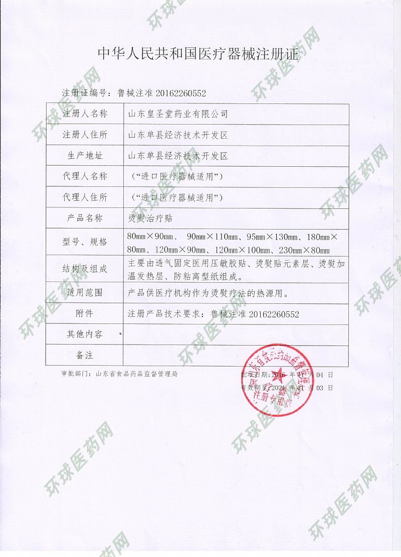 | 补充说明 | 【注意事项】1、仅限一次性使用,用后销毁;2、包装如有破损请勿使用;3、严格按照说明书使用4、贴敷后无热感,如有过敏等不适感应立即停止贴敷;5、防止烫伤 【慎用】皮肤感觉障碍、过敏体质、糖尿病、小儿患者。 【禁忌症】24小时急性创伤的局部、皮肤破损、高热患者、急性期炎症患者、孕妇下腹部、血友病患者、活动性结核患者、恶性肿瘤患者 【警示】当热源使用有不适或症状加重时,及时就医。 【使用说明】清洁患处,确认包装无破损后,打开包装,取出烫熨贴,将隔离膜撕去,按照传统烫熨疗法贴于患处,每24小时更换一次。 【生产许可】鲁食药监械生产许20140114号 【生产企业】山东皇圣堂药业有限公司 【生产日期】见包装 【有效期】两年 山东皇圣堂药业承接熨烫贴代加工和贴牌定制业务,全国招商代理! |