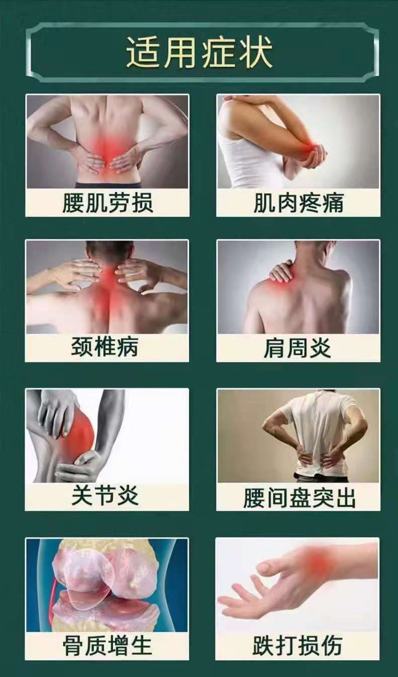 | 产品用途 | 成分:由降温物质和**形式的器具组成。大艾草叶、红花、川穹、九里香、当归,紫金皮、赤芍药、乳香。 适用范围:适用于筋骨不适引起的颈椎病、肩周炎、关节炎、腰椎突出增生、腱鞘炎、滑膜炎、腰肌劳损、肌肉拉伤、跌打损伤、风湿、类风湿等症状的降温。使用方法:涂抹于疼痛部位,一天1-2次 |