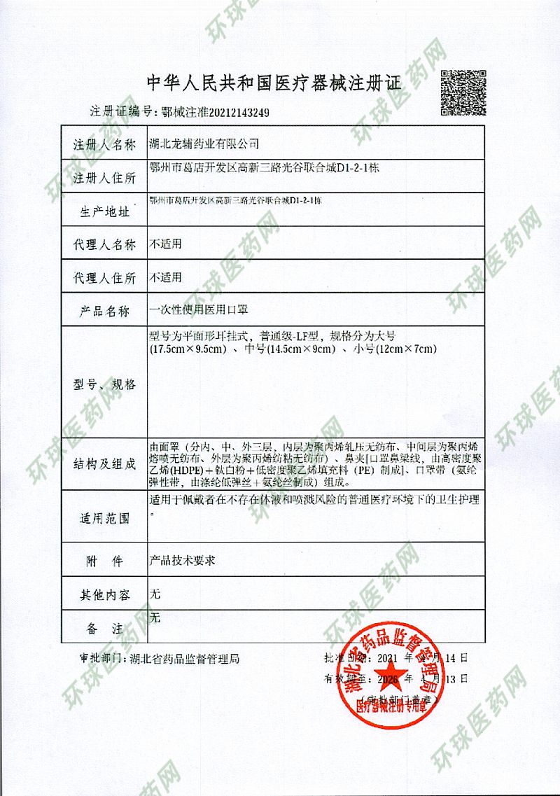 | 产品用途 | 供临床医务人员在有创操作过程中佩带,覆盖住使用者的口、鼻及下颌,为防止病原体微生物、体液、颗粒物等的直接透过提供物理屏障。 |