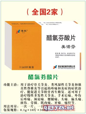 通用名称:醋氯芬酸片