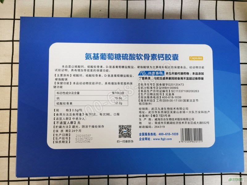 | 产品名称 | 氨基葡萄糖硫酸软骨素钙胶囊 |