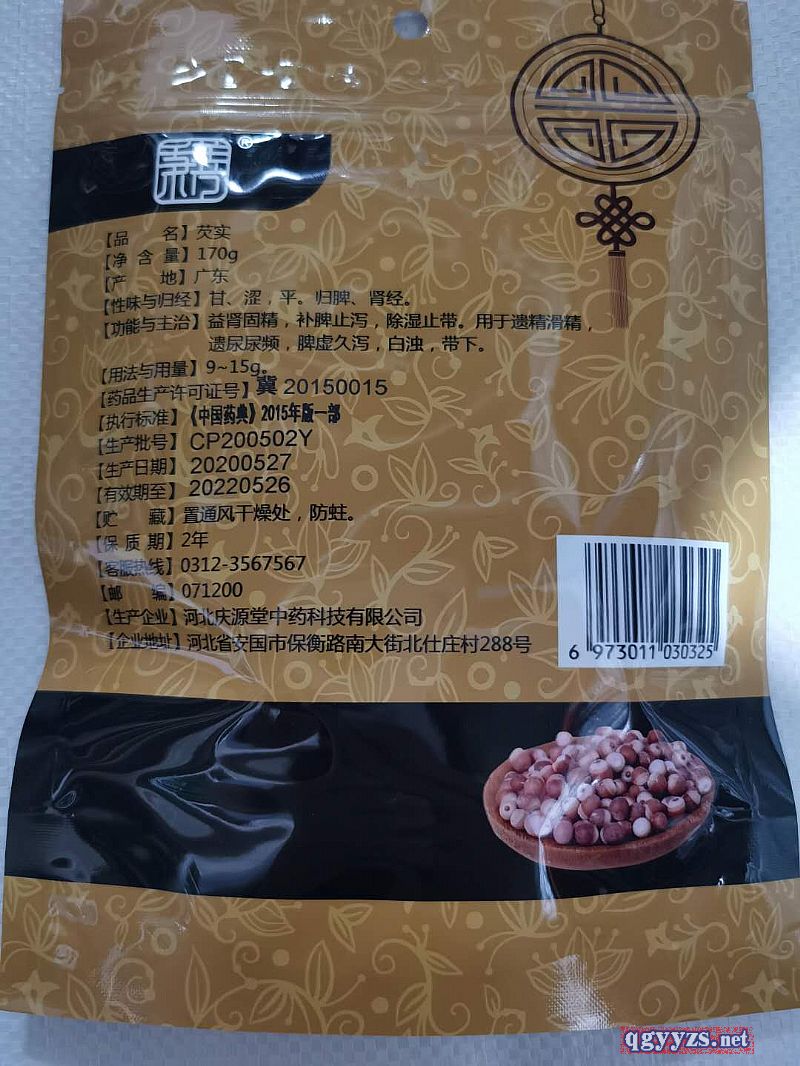| 补充说明 | 1、《本草经百种录》:“鸡头实,甘淡,得土之正味,乃脾肾之药也。脾恶湿而肾恶燥,鸡头实淡渗甘香,则不伤于湿,质粘味涩,而又滑泽肥润,则不伤干燥,凡脾肾之药,往往相反,而此则相成,故尤足贵也。” 2、《本草求真》:“芡实如何补脾,以其味甘之故;芡实如何固肾,以其味涩之故。惟其味甘补脾,故能利湿,而泄泻腹痛可治;惟其味涩固肾,故能闭气,而使遗、带、小便不禁皆愈。功与山药相似,然山药之阴,本有过于芡实,而芡实之涩,更有甚于山药;且山药兼补肺阴,而芡实则止于脾肾而不及于肺。 |