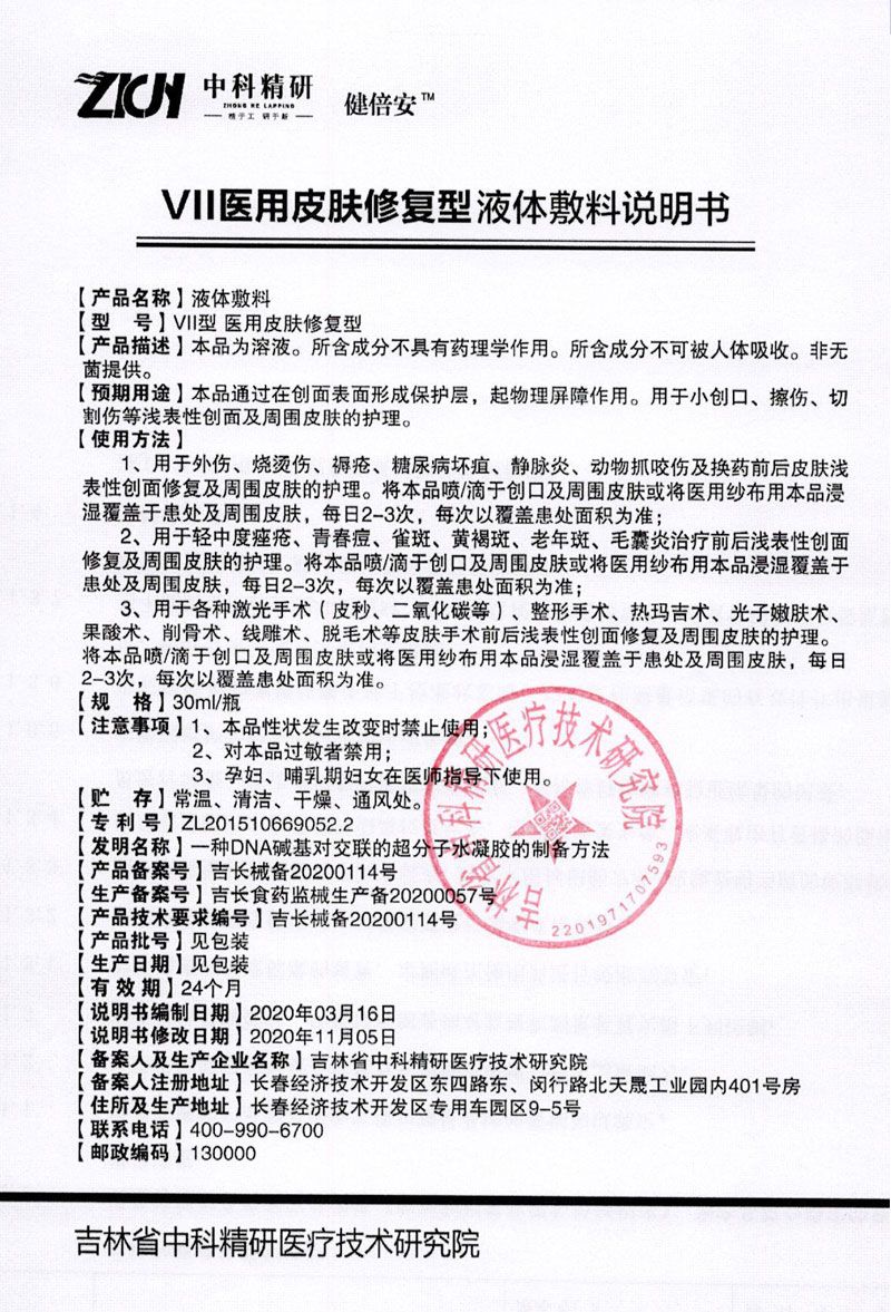 | 产品名称 | 医用皮肤修复型液体敷料 |