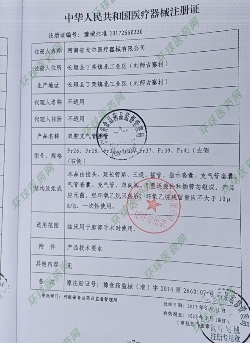 生产单位:河南省戈尔医疗器械有限公司