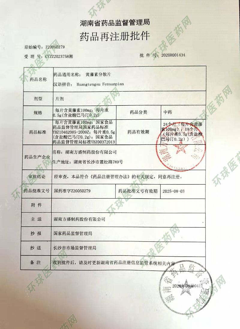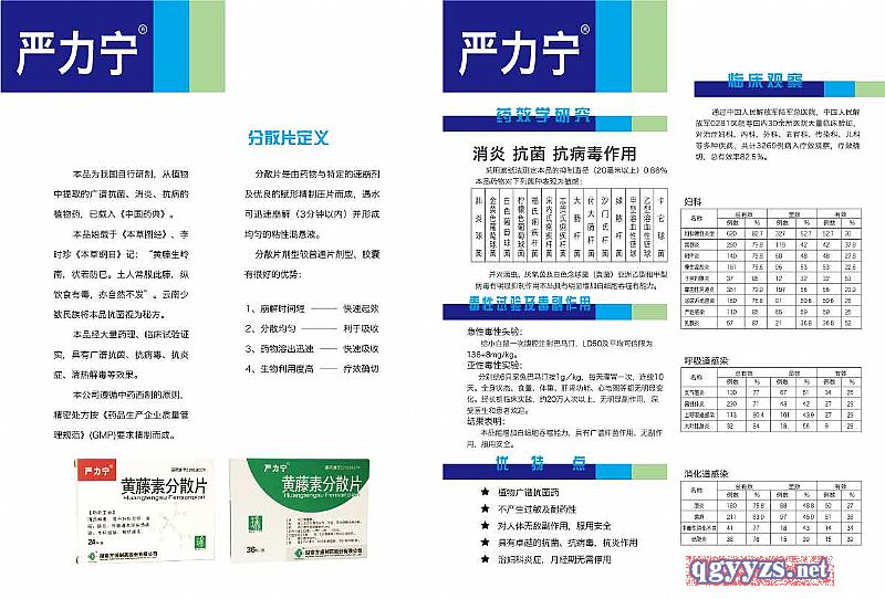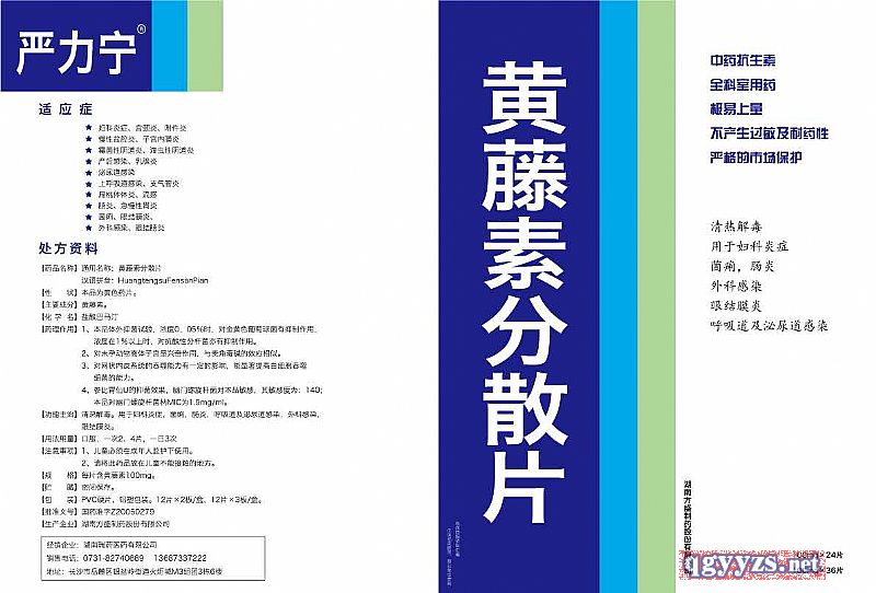 | 产品规格 | 每片含黄藤素100mg;每片重0.5g(含盐酸巴马汀0.2g) 24片/盒 |