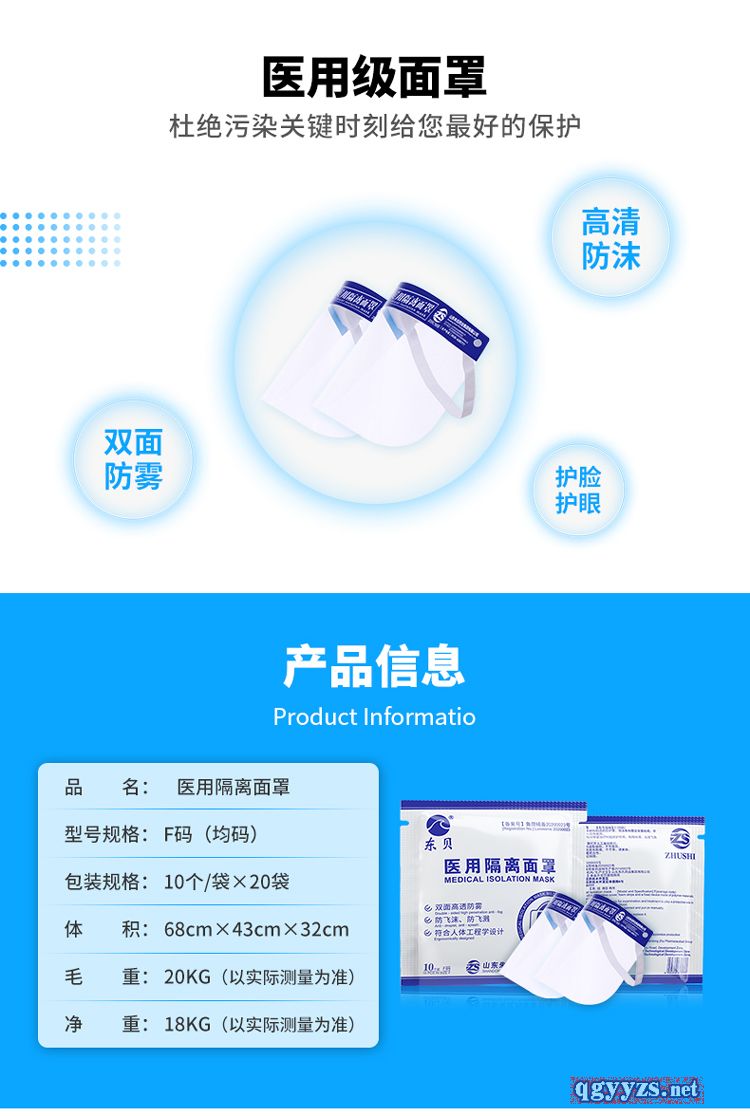 | 产品名称 | 朱氏药业东贝医用隔离面罩 |