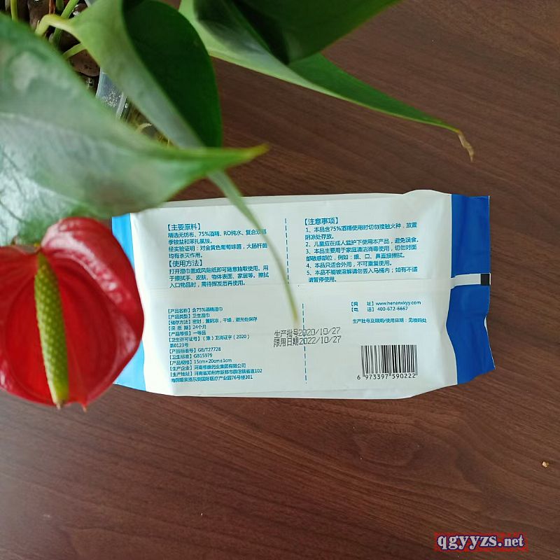 | 销售包装 | 康润亿家含75%酒精湿巾 |