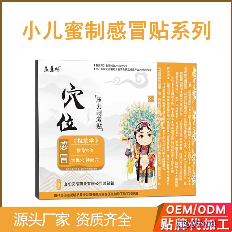 | 补充说明 | 1、本品针对人体特定穴位,对中医穴位起刺激作用 2、主要功效用于因感冒引起的儿童发热、咽痛等症状的辅助治疗 |