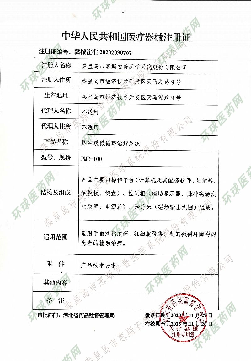 | 产品名称 | 惠斯安普PMR微循环治疗系统 |