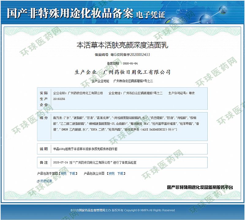 | 产品名称 | 本活草本活肤亮颜深度洁面乳 |