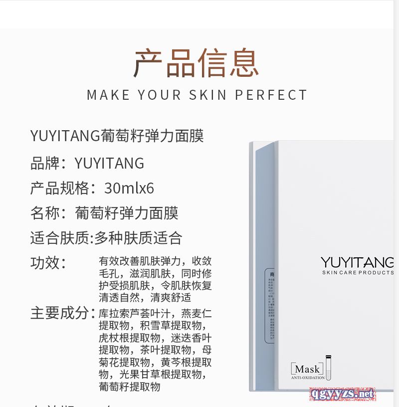 | 产品名称 | YUYITANG葡萄籽弹力面膜 |