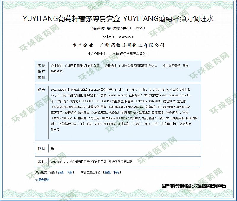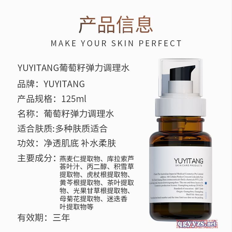 | 产品名称 | YUYITANG葡萄籽弹力调理水 |