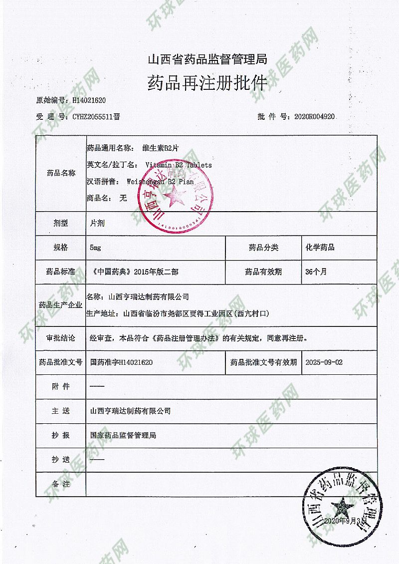 | 英文名称 | Vitamin B2 Tablets |