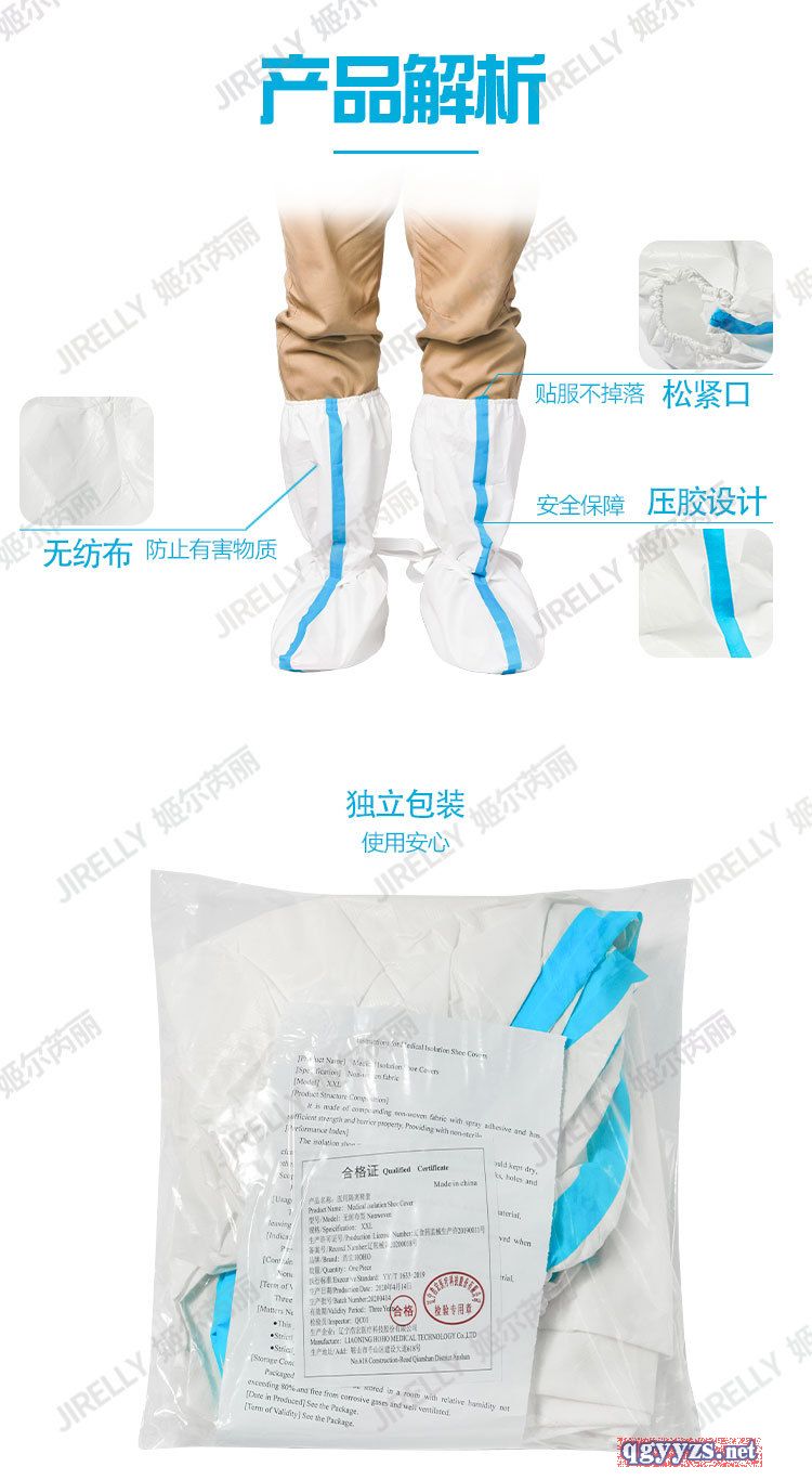 | 其它说明 | 使用优质无纺布或者优质PP+PE覆膜,淋膜材质。使用中耐磨防水,透气,隔离效果好,高筒鞋套不下滑。 |