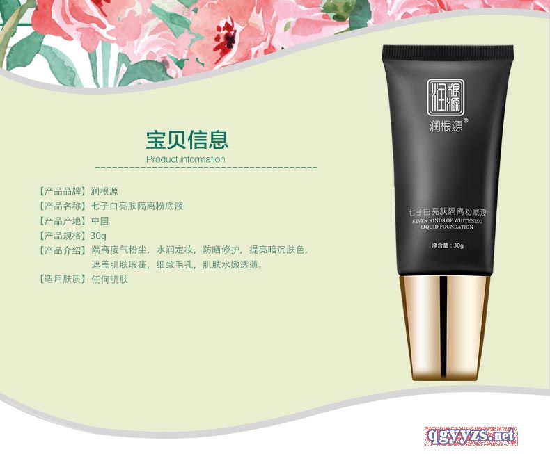 | 产品名称 | 润根源七子白亮肤隔离粉底液 |