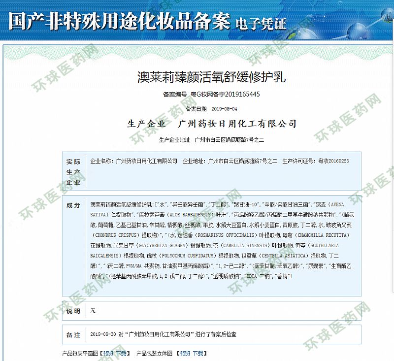 | 其它说明 | 广州**日用化工有限公司--是工商局注册的一家正规护肤品生产企业,多年来已经与澳大利亚皇家医学美容控股有限公司强强联手打造成为以科研,生产销售,品牌策划,OEM加工,国内外贸易服务的强大组合,一直致力于天然中草药植物护肤领域的研发,生产符合****标准化的化妆品。工厂拥有现化制造基地近2万平方米,拥有妆字号车间和消字号车间,引进国际*先进的德国专业生产设备,10万级净化车间,30万级包装车间,全套自动化生产线,利用先进的生产设备和雄厚的技术力量为依托,严格按照《化妆品生产许可105条检查要点》标准生产和管理,确保产品的品质。广州**汇集了中外药理学、中药学、植物学、化学工程学和精细化工等学科的专业研发人员,精心选择优质***原料以及*佳的配方组合方案,为生产*优质的产品奠定坚实的基础。 |