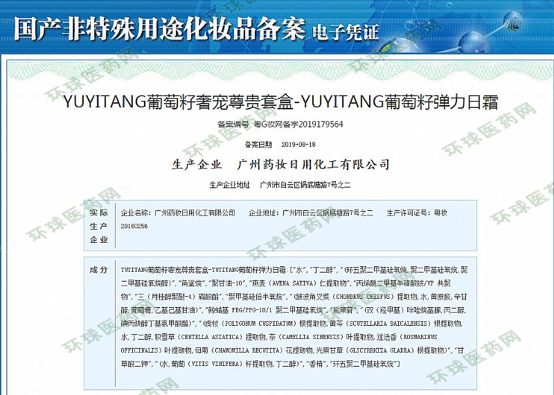 | 产品名称 | YUYITANG葡萄籽弹力日霜 |
