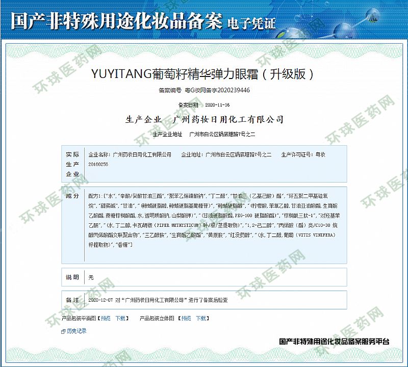 | 产品名称 | YUYITANG葡萄籽精华弹力眼霜 |