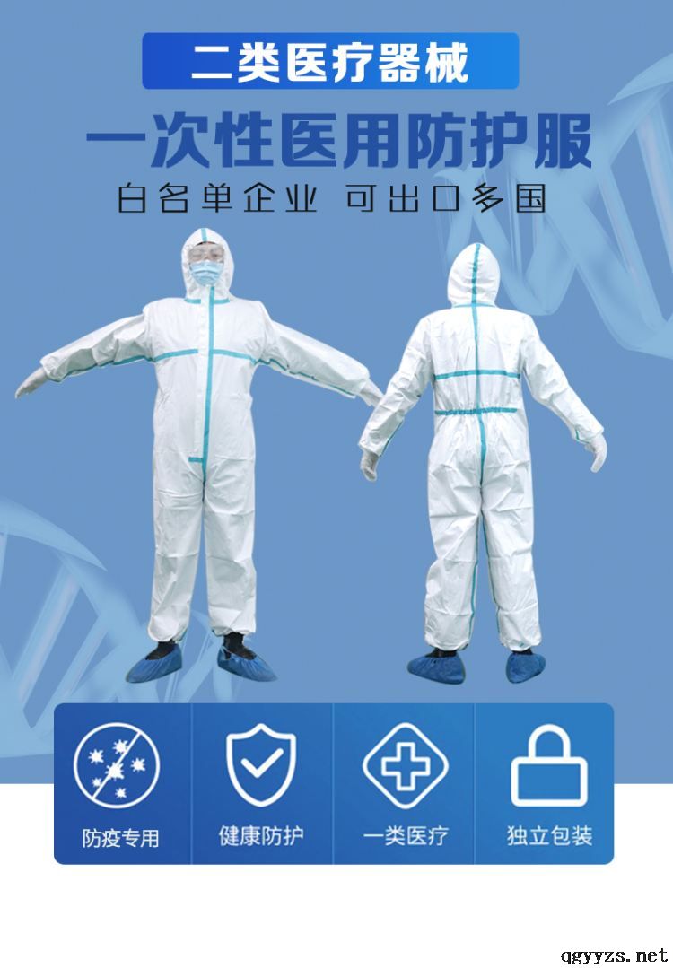 | 补充说明 | 【结构组成】由无纺布缝纫和粘接而成。 二级防护,65g/包,有亚胶条,防病毒,ICU、红区 【适用人群】:临床医务人员 【适用范围】供临床医务人员在工作时接触到的具有潜在感染性的患者血液、体液、分泌物等阻隔、防护用。 【使用方法】展开防护服,拉开拉链,从拉链开口处依次伸入双腿,再穿着上衣,手从衣袖中伸出,带好头套,从胸前正面拉好拉链。 【注意事项、警示及提示性说明】 (1)本产品为无菌、一次性使用产品,有效期三年; (2)本产品只限于一次性使用,打开包装后应立即使用,使用时间不超过24小时,用后应焚烧处理; (3)穿着前如发现破损或拉链、缝线等任何部位有不妥之处,则不可使用; (4)防护服应避免长时间与化学物质接触。 (5)本产品无阻燃性。 |