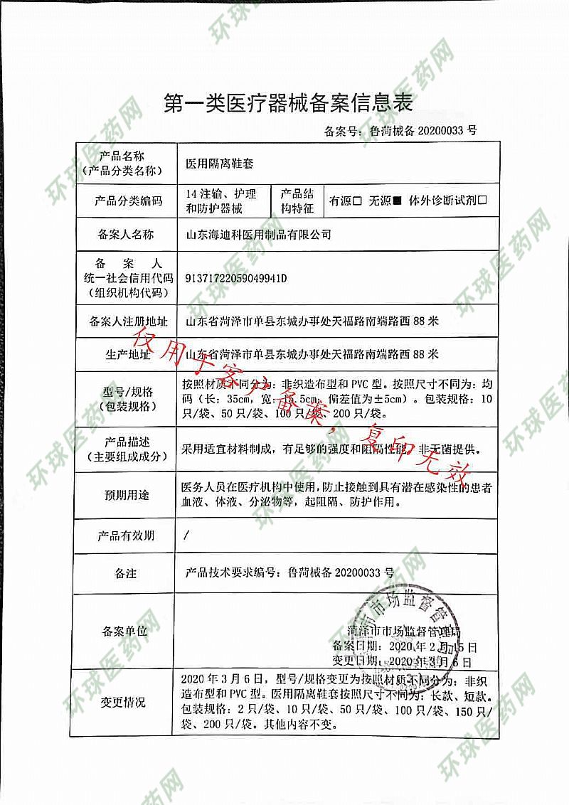 批准文号: 鲁菏械备20200033号 【验证真伪】