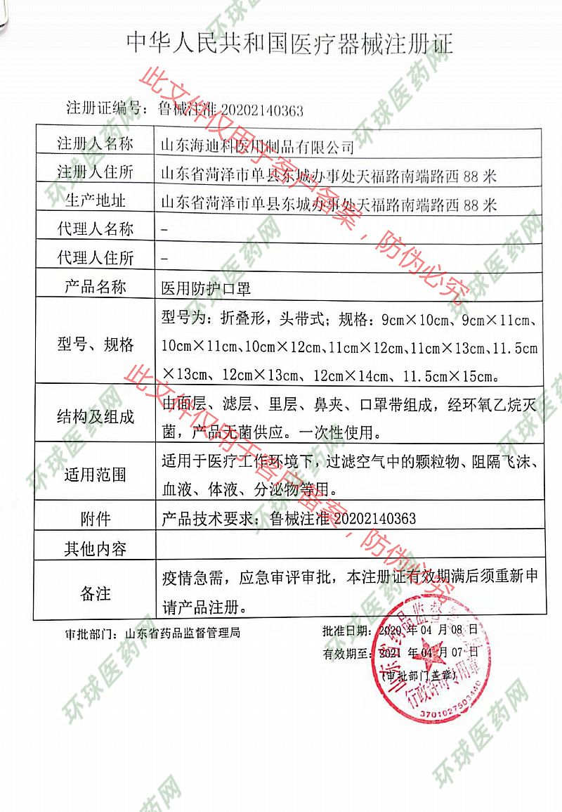 批准文号: 鲁械注准20202140363 【验证真伪】