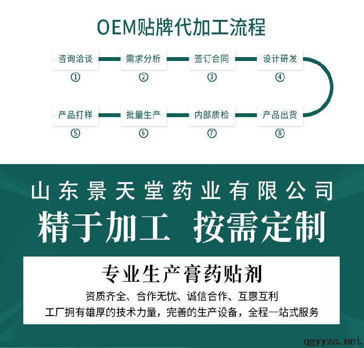 | 补充说明 | 山东景天堂药业有限公司 贴膏产品种类众多:分为骨科、儿科、妇科、男科等几大类型,资质齐全,文号正规, 适合多种渠道操作,性价比高。 专注膏药贴剂行业近20年之久,具有成熟的膏药生产线、车间及技术研发团队, 正规文号多达200余种可供您挑选,生产器械选用德国、意大利高精密仪器。 贴膏生产、包装设计、物流等一站式服务! 百款成熟配方,加工定制,现货批发 穴位压力贴、穴位磁疗灸、穴位贴敷治疗贴、远红外磁疗贴、热敷贴、暖宫贴、熨烫贴 医用冷敷贴、艾灸贴、泥灸、艾草贴、三伏三九贴、巴布贴、乳腺贴、失眠贴、手工黑膏药 前列腺贴、小儿腹泻/消食/止咳/感冒贴、艾灸液、通气鼻贴等 资质齐全:正规械字号生产资质 新批文号:近千种批准文号 正规广审:电商、电视购物爆品 医保项目:医院、药店、OTC热卖 我们全程跟踪服务,选择我们,您放心。 24小时财富热线:19153039454孔经理 |