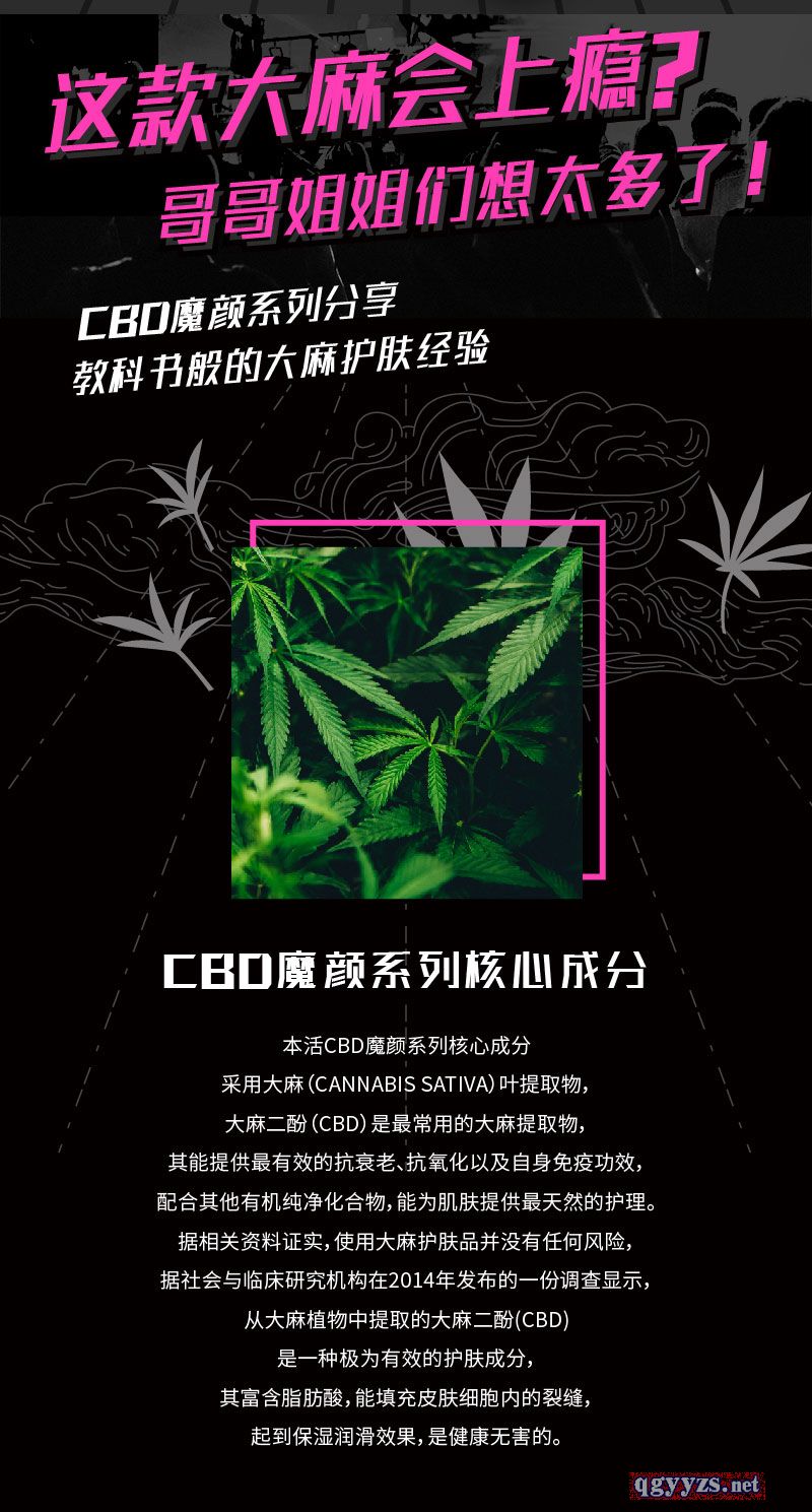 | 产品卖点 | 本活CBD魔颜系列采用大麻叶提取物,大麻二酚是常用的大麻提取物。萃取大麻叶提取物,蛹虫草提取物,滨海当归叶茎提取物,积雪草提取物,紫玉兰花提取物,赋能无光肌肤,抚摸您的叛逆肌,不油不腻,滋润肌肤 |