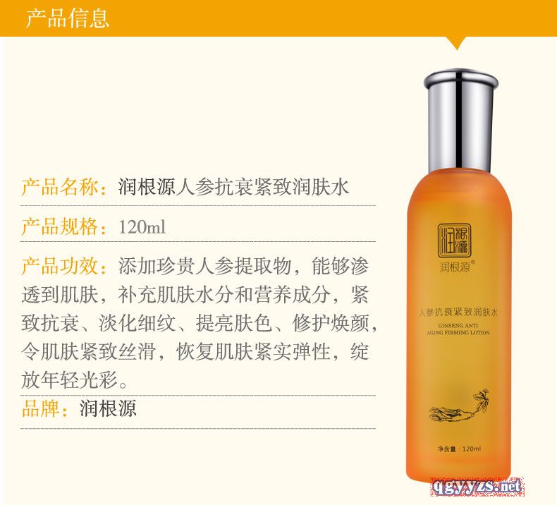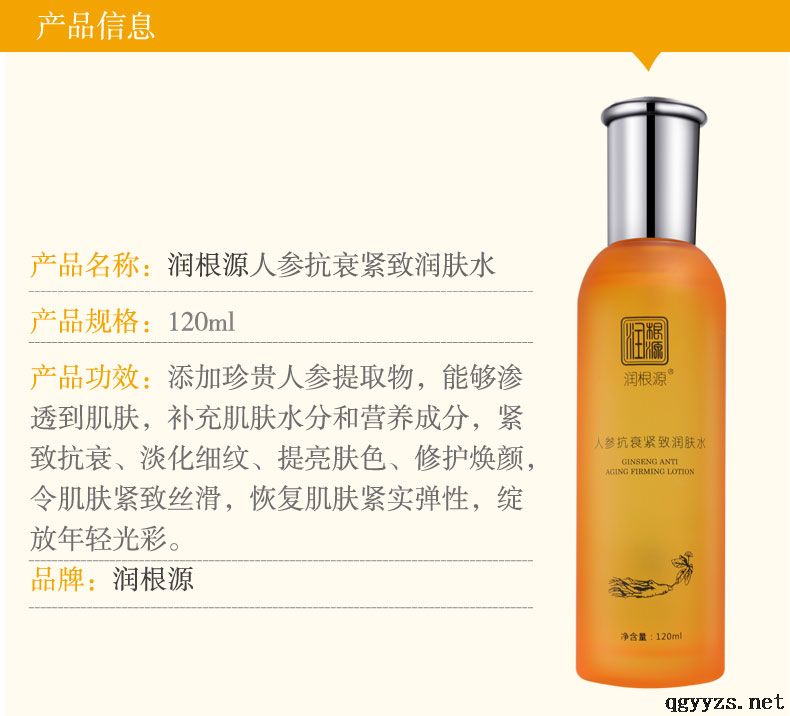 | 产品名称 | 润根源人参抗衰紧致润肤水 |