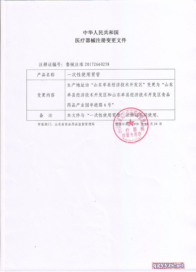 | 产品名称 | 一次性使用单腔胃管 |