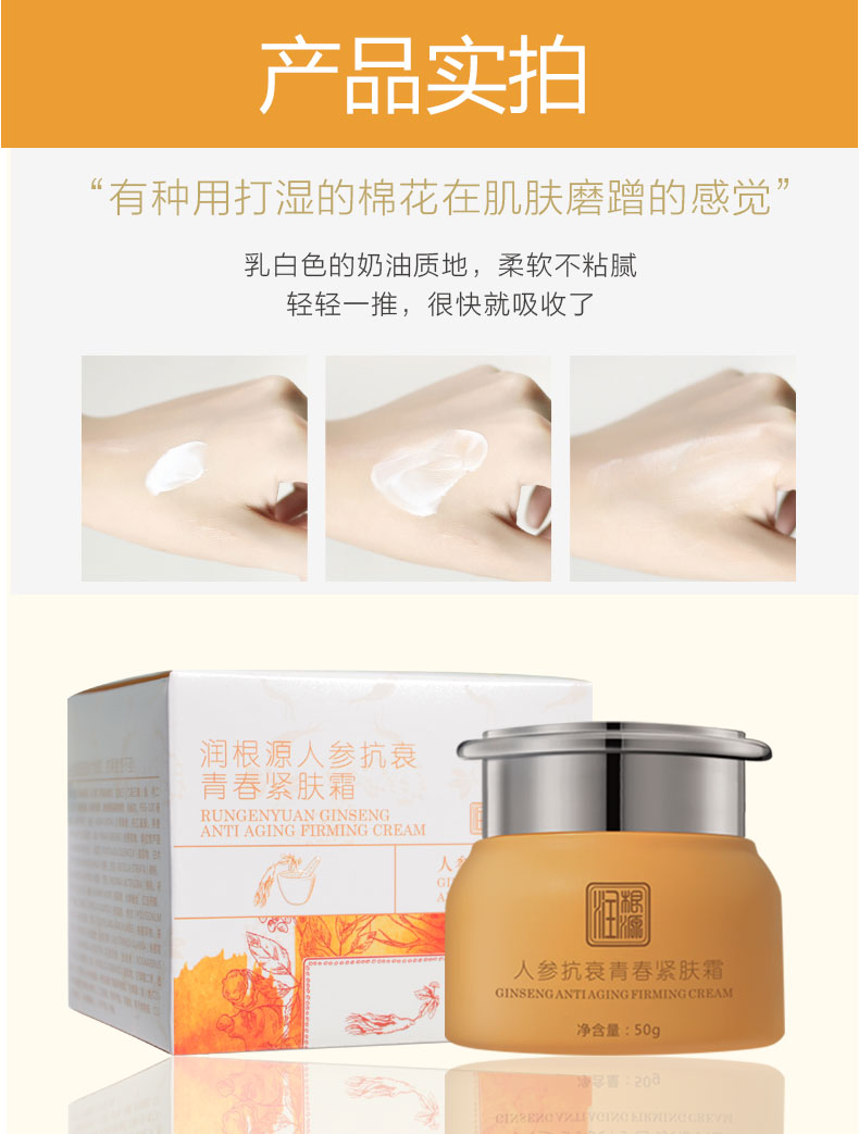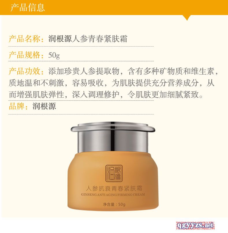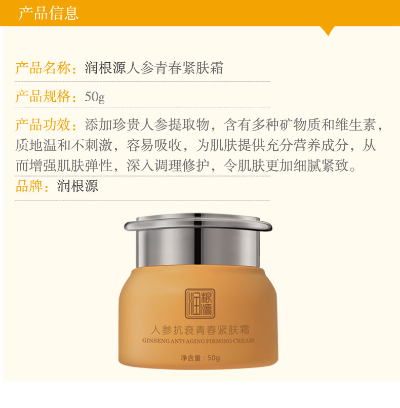 | 产品名称 | 润根源人参抗衰青春紧肤霜 |