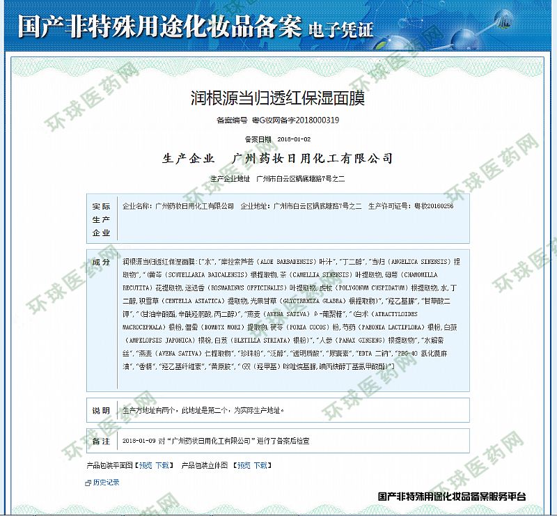 | 英文名称 | Run Genyuan Angelica red Moisturizing Mask |