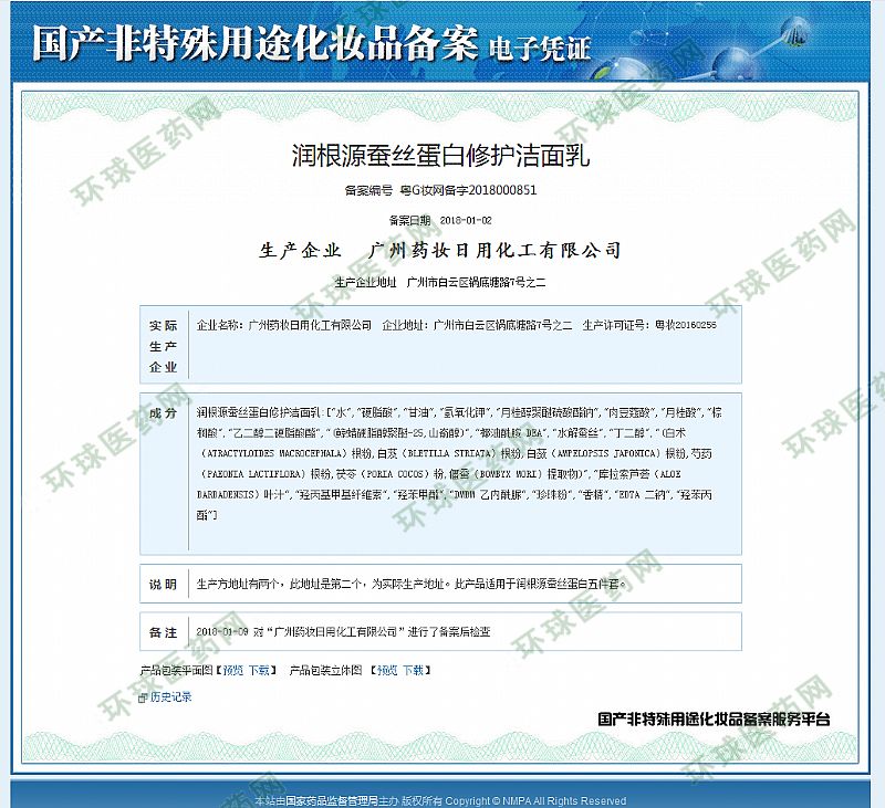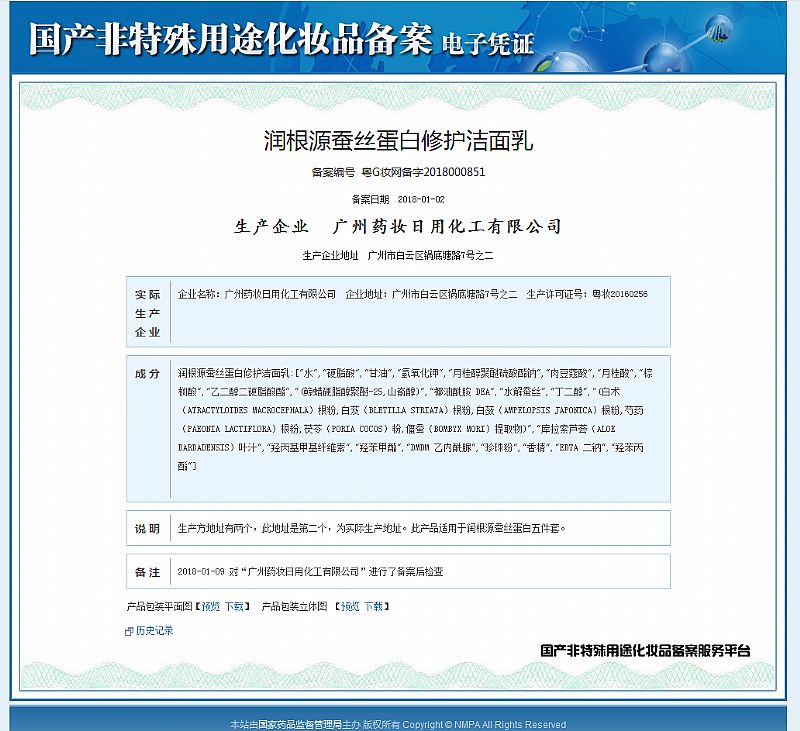 | 补充说明 | 外用品,请勿入眼;请放置儿童不易触碰的地方;请储存于阴凉干燥处。 广州**日用化工有限公司--是工商局注册的一家正规护肤品生产企业,多年来已经与澳大利亚**医学美容控股有限公司强强联手打造成为以科研,生产销售,品牌策划,OEM加工,国内外贸易服务的强大组合,一直致力于**中草药植物护肤领域的研发,生产符合****标准化的化妆品。工厂拥有现化制造基地近2万平方米,拥有妆字号车间和消字号车间,引进国际*先进的德国专业生产设备,10万级净化车间,30万级包装车间,全套自动化生产线,利用先进的生产设备和雄厚的技术力量为依托,严格按照《化妆品生产许可105条检查要点》标准生产和管理,确保产品的品质。广州**汇集了中外药理学、中药学、植物学、化学工程学和精细化工等学科的专业研发人员,精心选择优质纯**原料以及*佳的配方组合方案,为生产*优质的产品奠定坚实的基础。 |