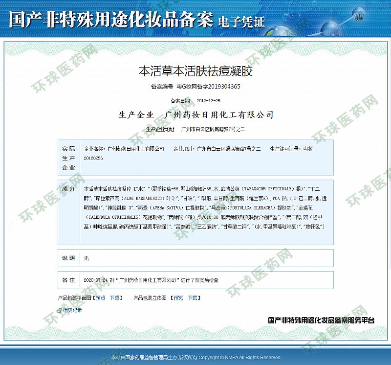 | 产品名称 | 本活草本活肤祛痘凝胶 |