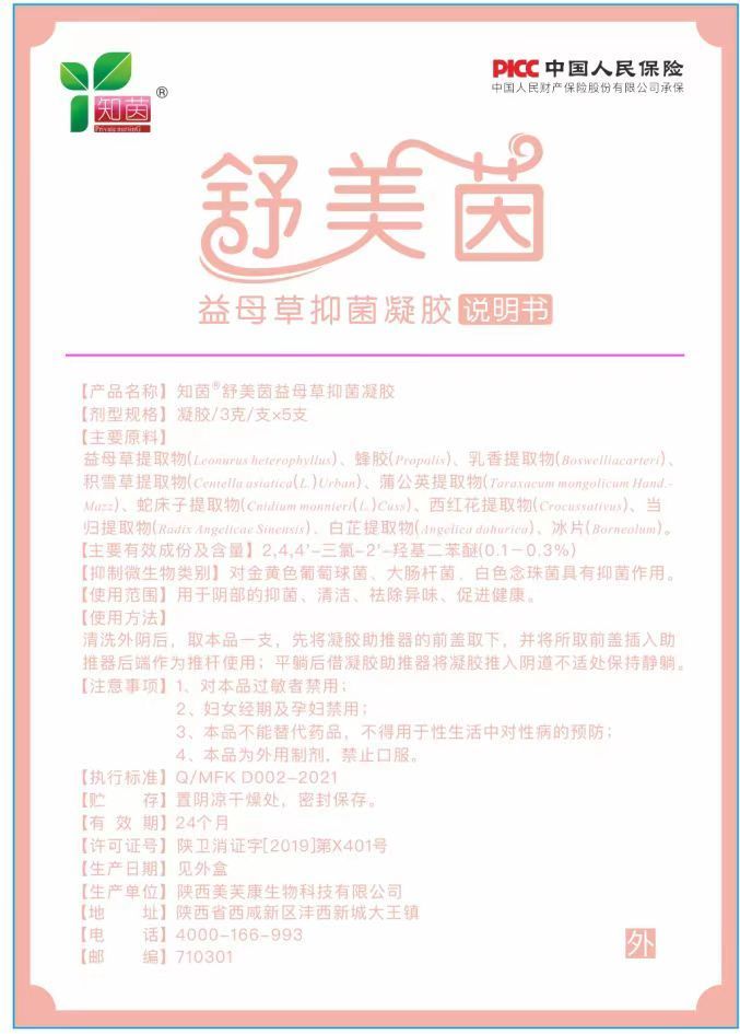 | 产品名称 | 知茵®;舒美茵益母草妇科凝胶 |