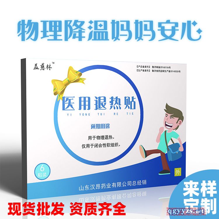 | 使用方法 | 沿缺口撕开包装袋,取出贴剂,揭开透明胶膜,将凝胶面直接敷贴于额头或太阳穴也可敷贴于颈部大椎穴;为加快降温速度可加用数贴,同时贴在人体左右颈总动脉、左右股动脉处;牙痛患者可将退热贴贴在牙痛处。每天1~3次,每贴可连续使用6-8小时(请仔细阅读产品说明书或者在医务人员的指导下购买和使用)。 |