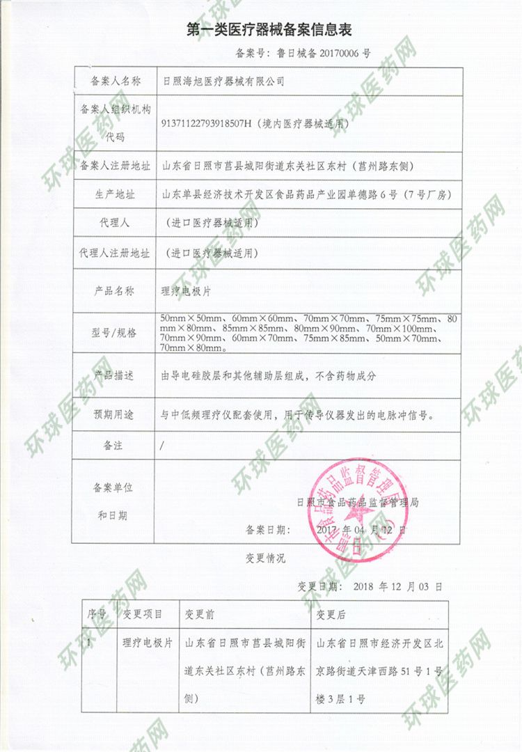 批准文号: 鲁日械备20170006号 【验证真伪】