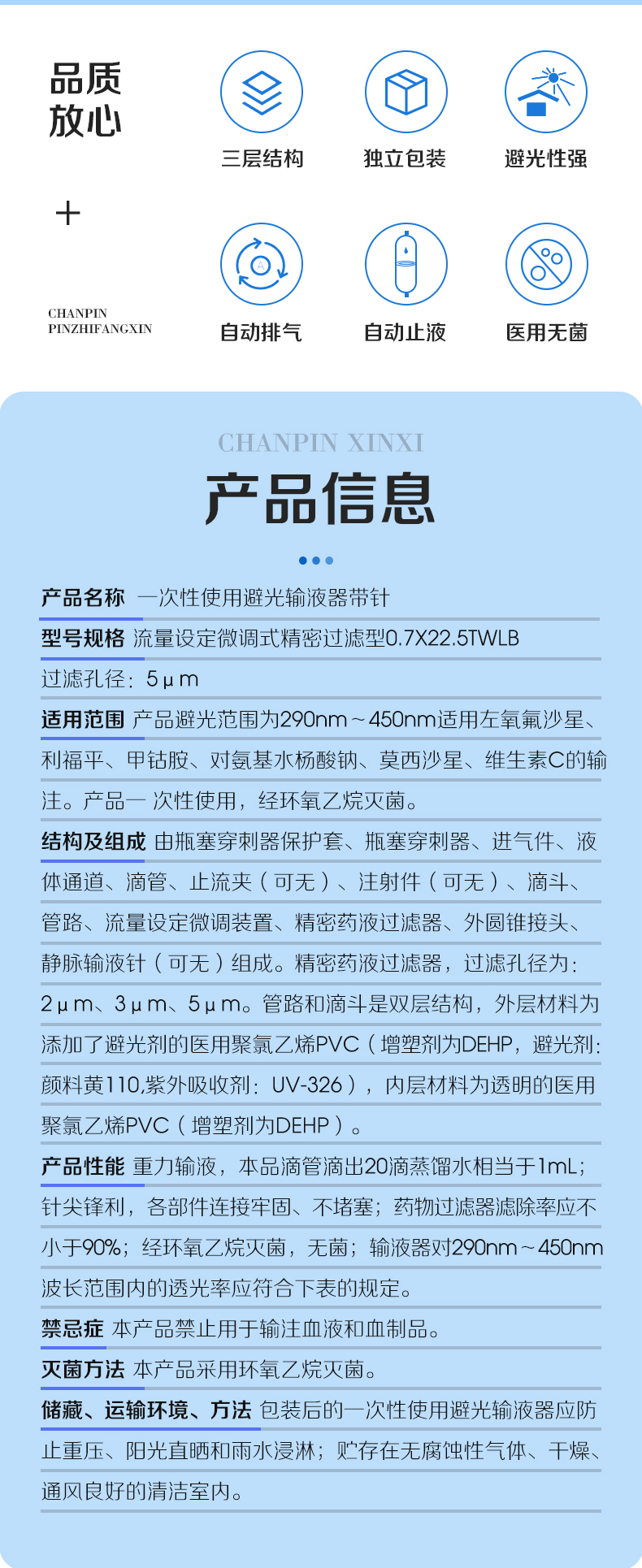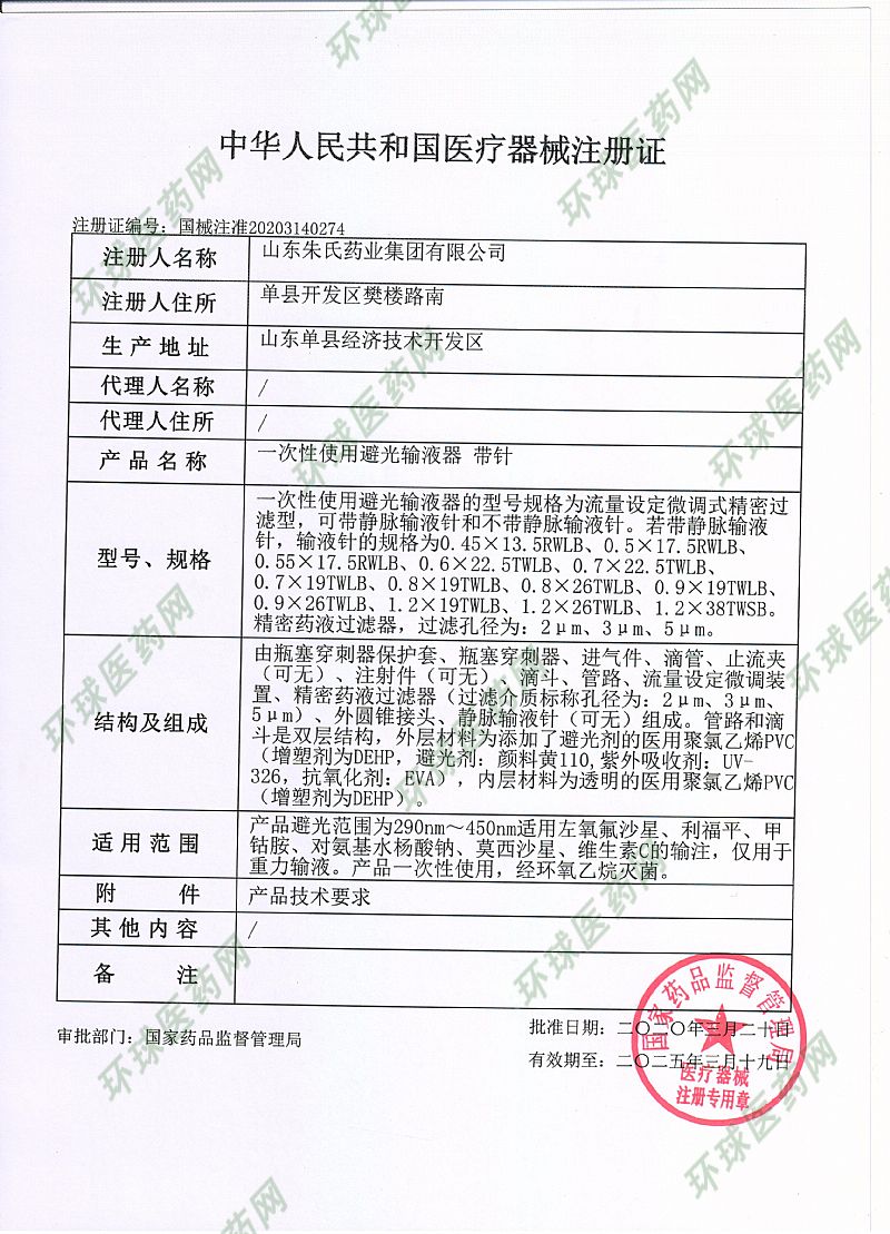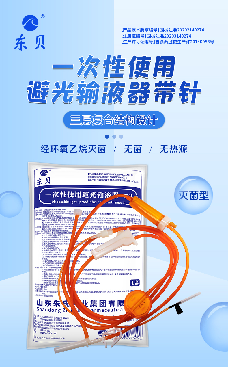 | 产品名称 | 一次性使用避光输液器带针 |
