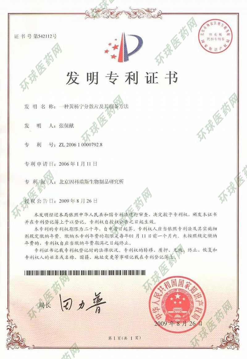 | 通用名称 | 黄杨宁分散片 |