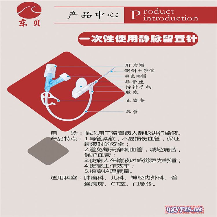 | 产品卖点 | 静脉留置针适用科室,注射/输液室供插入人体外周血管静脉系统连续输液用。 |